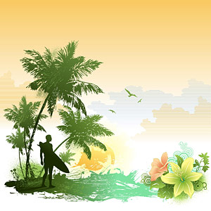 eps format. People in Pictures, including windsurfing, fashion flowers, waves, palm silhouettes, mountains……