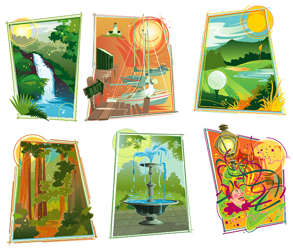 Location: Home > Vector > Vector landscape > Falls seaside golf course woods fountain fun