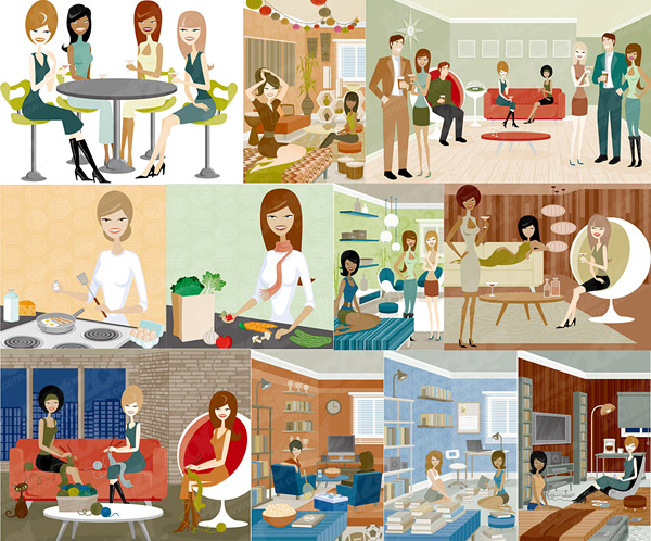 eps format, ai formats, including jpg preview, keyword: men and women, interior, illustration, home, party, indoor