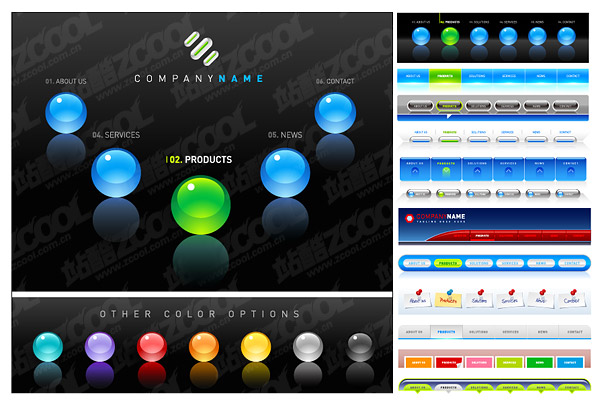 eps format, with jpg preview, the crucial words: vector navigation, web page design elements, Crystal round, button, crystal ball, the menu notes, tack