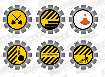 eps format, with jpg preview, the crucial words: vector icon, road maintenance, gear, warning, construction, shovel, digging the road