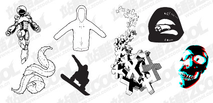 eps format, with jpg preview, the crucial words: Vector robot, clothing, elements of the trend, mouth, Skateboarding, silhouette figures, the trend of design, three-dimensional, GoMedia, vector material