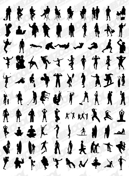 ai format, version cs3, including jpg preview, keyword: vector silhouette, figure, posture, office workers and white-collar, sports, sports, martial arts, yoga, dance, aerobics, golf, drink, swing, boxing , cheerleaders, vector material