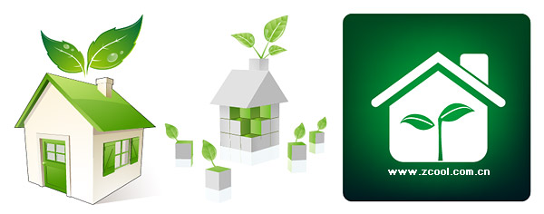 eps format, including jpg preview, keyword: Vector icons, house, green, leaves, environmental protection, vector material