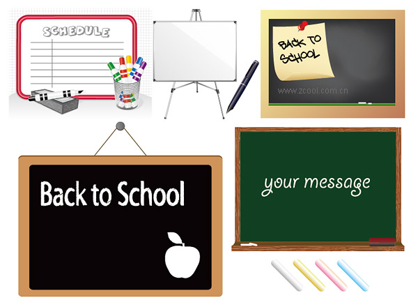eps format, including jpg preview, keyword: Vector blackboard, whiteboard, teaching tools, stationery, school supplies, chalk, oil-based pen, pens, vector material