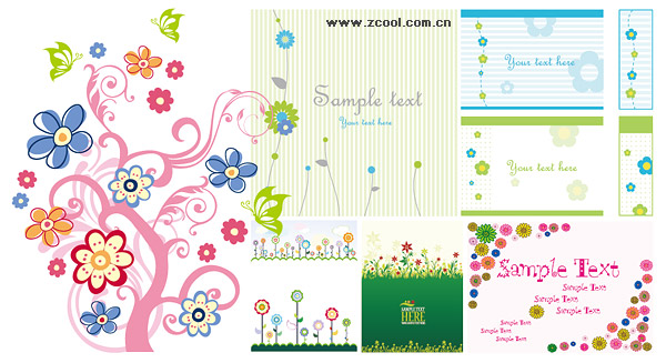 Variety of lovely material vector style flower patterns